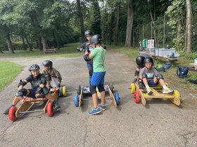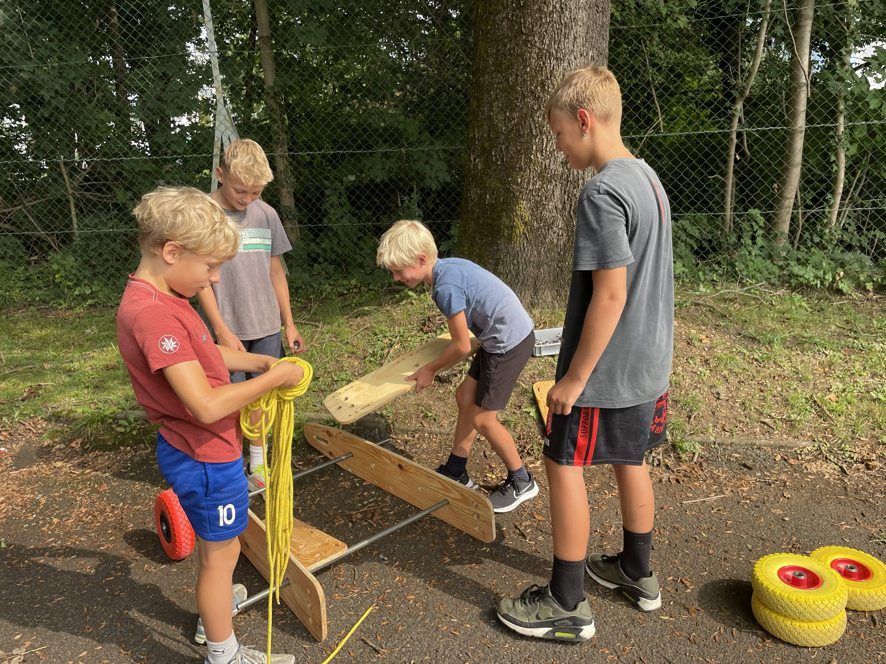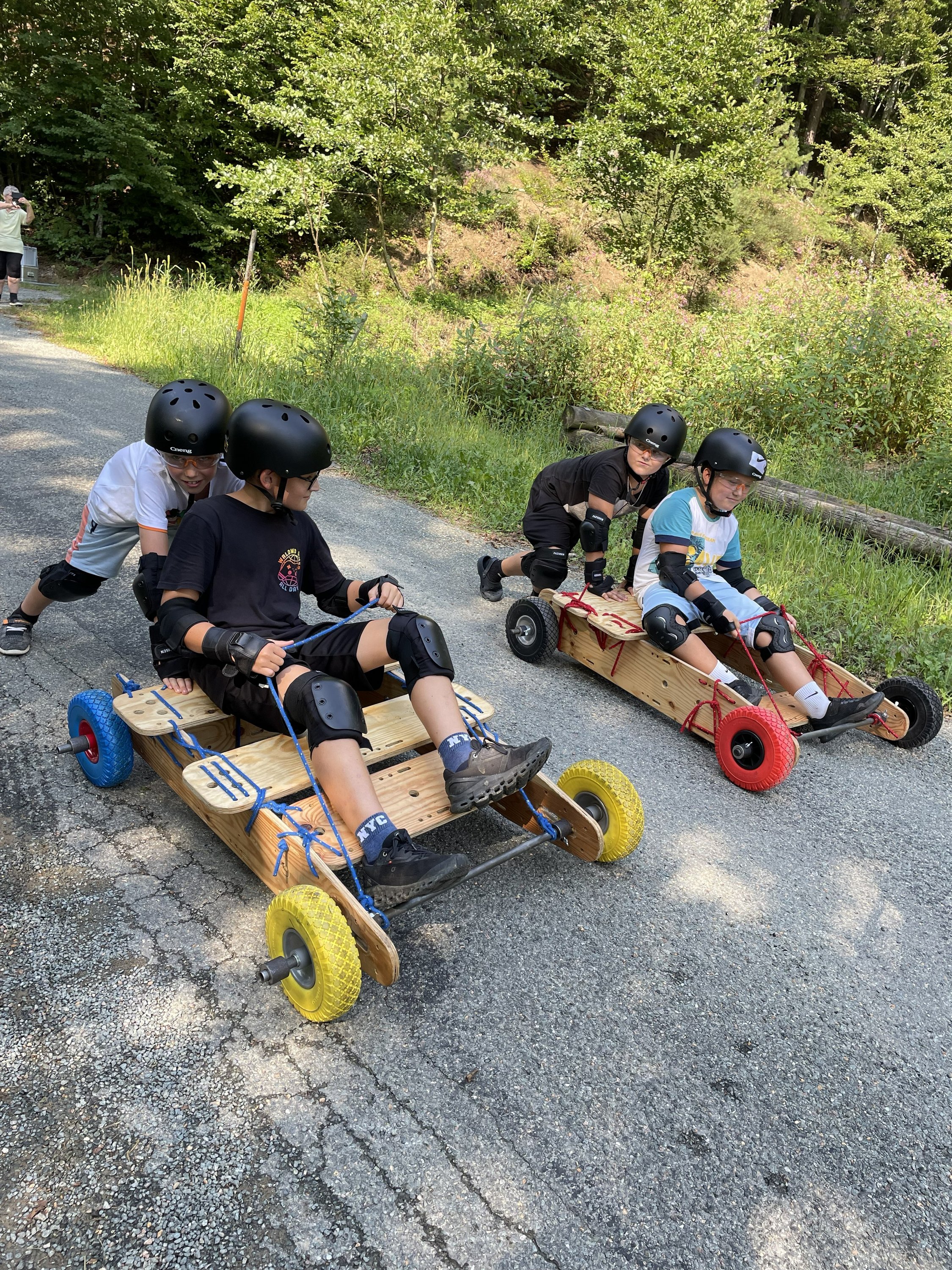 In kleinen Teams werden renntaugliche Seifenkisten gebaut. Kreativität, Ideenreichtum, technisches Geschick und Zusammenarbeit sind die Erfolgsfaktoren. Beim anschließenden Rennen wird sich zeigen, welches Team die schnellste, kreativste und stabilste Seifenkiste gebaut hat. Um die Materialien für die Seifenkisten zu erhalten, müssen die Schülerinnen und Schüler Lösungen finden, Strategien entwickeln und gemeinsam verschiedene Aufgaben lösen.